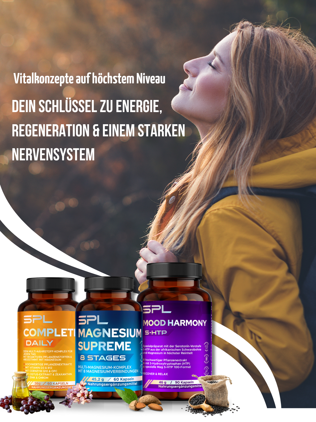 Das SPL VITAL KONZEPT ist ein ganzheitlicher Ansatz, der den Körper durch 4 Phasen oder Vital-Impulse begleitet, um Gesundheit, Leistung und Wohlbefinden auf ein neues Niveau zu heben. Jede Phase hat eine spezifische Funktion, unterstützt durch sorgfältig abgestimmte Produkte und eine klare Farbkennzeichnung. Der Mineralstoff Magnesium wird hier natürlich optimiert.