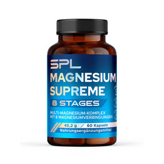 Spüre den Unterschied: unser SPL Magnesium 8 Stages-Komplex vereint acht reine, hochbioverfügbare Magnesiumverbindungen in optimal abgestimmter Dosierung. Entwickelt für schnelle, gleichmäßige Aufnahme und volle Wirkung – ob im Job, beim Sport oder in stressigen Zeiten.