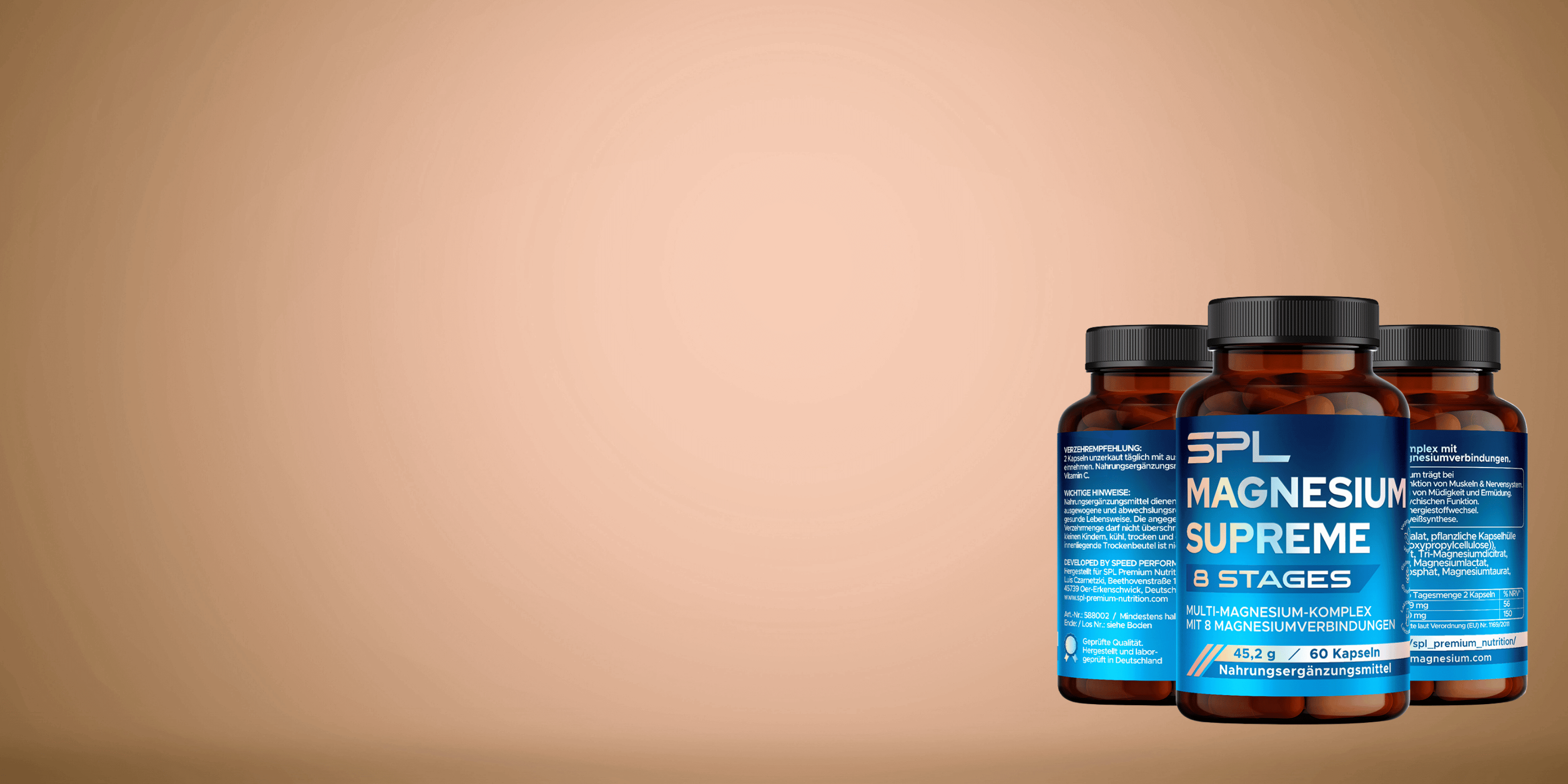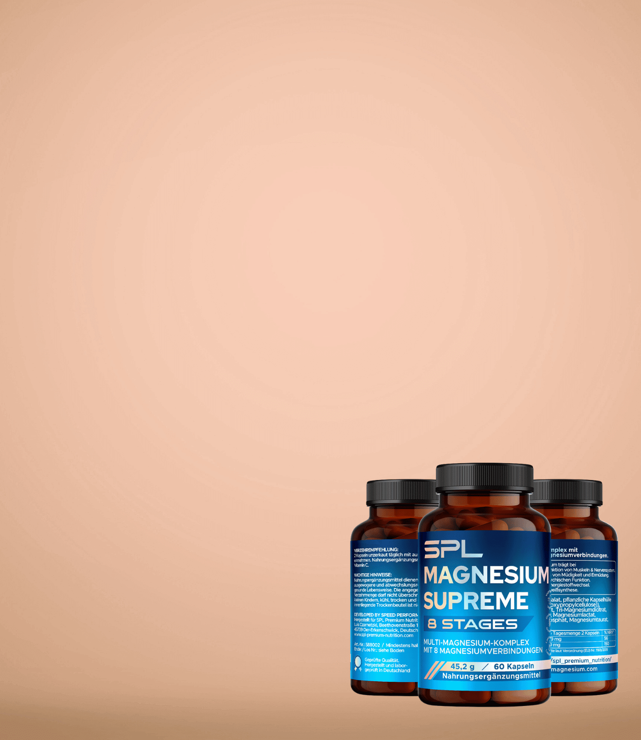 Der Name unseres Produkts sagt alles: SPL steht für Speed Performance Lab, und wir haben uns das Ziel gesetzt, leistungsstarke und innovative Produkte zu entwickeln. Der Zusatz SUPREME steht für die herausragende Qualität und Effektivität unserer Formel. 7 STAGES bezieht sich auf die sieben sorgfältig ausgewählten Magnesiumverbindungen, die in unserer einzigartigen Formel kombiniert wurden, um eine umfassende Unterstützung für deinen Körper zu gewährleisten – von der Muskelfunktion bis hin zur geistigen Leistungsfähigkeit. Hier geht es zum SPL Magnesium...